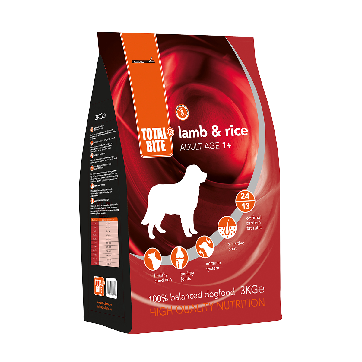 Total Bite Dog Lamb & Rice zorgt ervoor dat je hond in een optimale conditie blijft. Het voer is volledig glutenvrij en verlaagt de kans op voedselintolerantie en allergische reacties. Daarnaast bevat dit voer organische sporenelementen. Samen met de eiwitten, mineralen en vetten bieden deze ingrediënten de juiste ondersteuning voor een goede gezondheid.