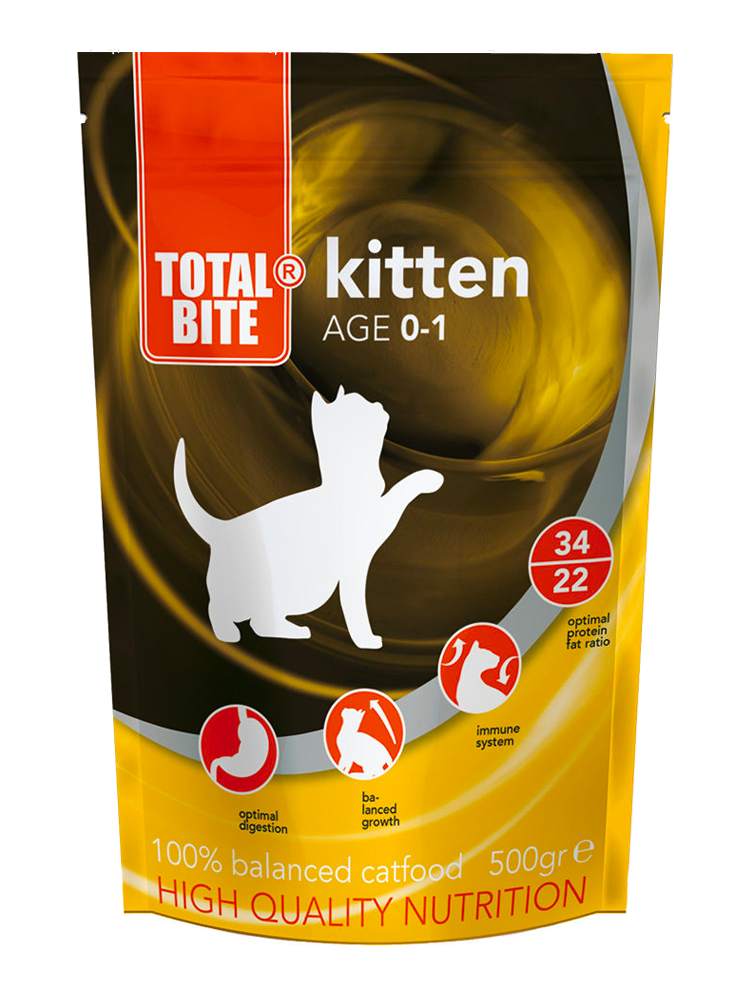 Jouw kitten is in de groei en daarom is het erg belangrijk dat hij in het eerste levensjaar alle voedingsstoffen binnenkrijgt die nodig zijn om groot en sterk te worden. Total Bite Cat Kitten is speciaal gemaakt voor kittens tot 1 jaar. Bovendien is dit een glutenvrij en toch vezelrijk recept: goed voor een gezonde spijsvertering en een regelmatige stoelgang.