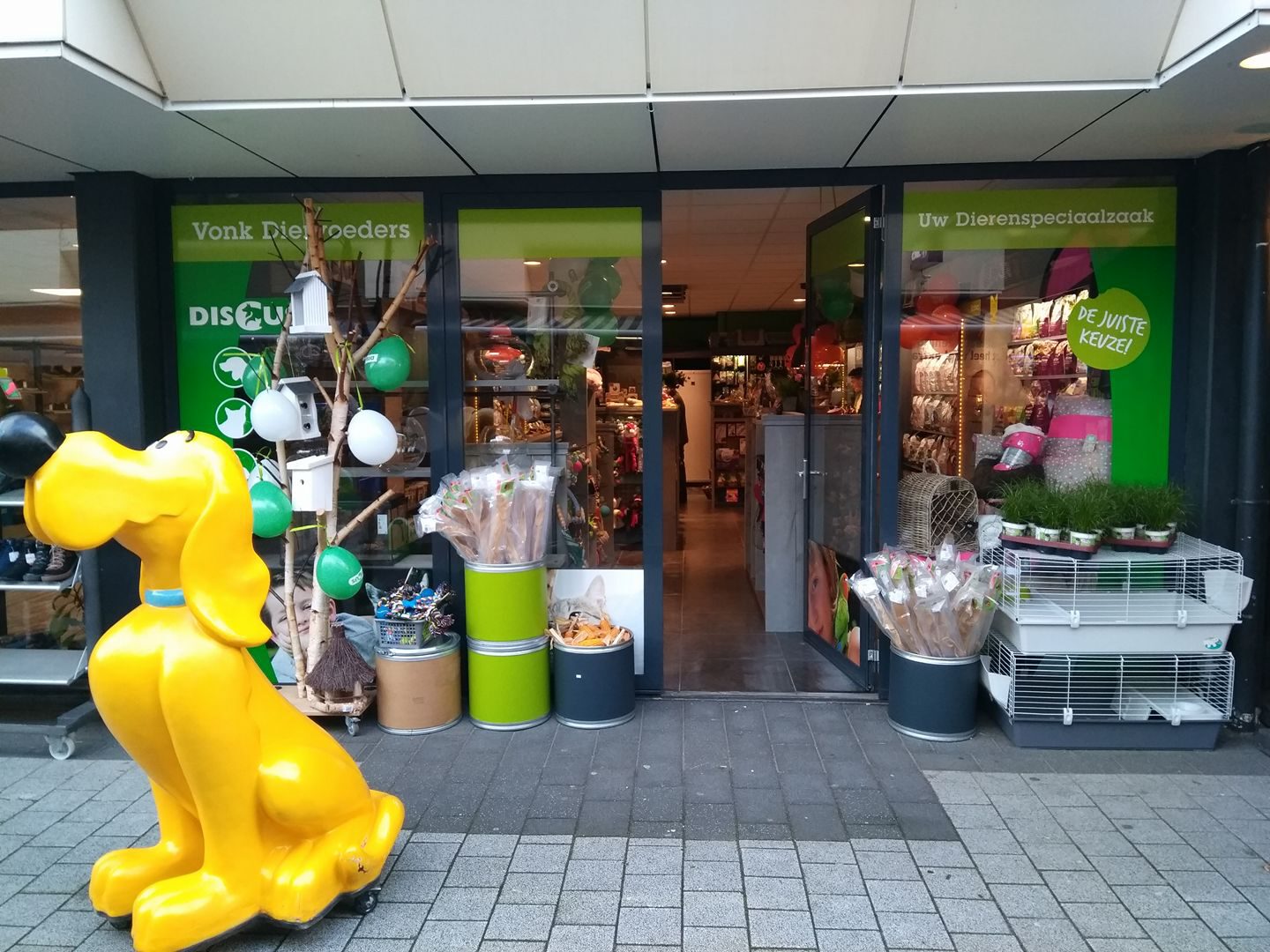 De nieuwste Vonk winkel is ook weer heel gezellig en warm geworden. Het assortiment bestaat uit alle producten die men voor de huisdieren nodig heeft. Ondanks dat dit een kleine winkel is zijn we heel compleet. Al onze medewerkers zijn geschoold en weten waar ze over praten. Dus ook voor advies ben je van harte welkom! Kom eens een kijkje nemen en laat je verrassen.