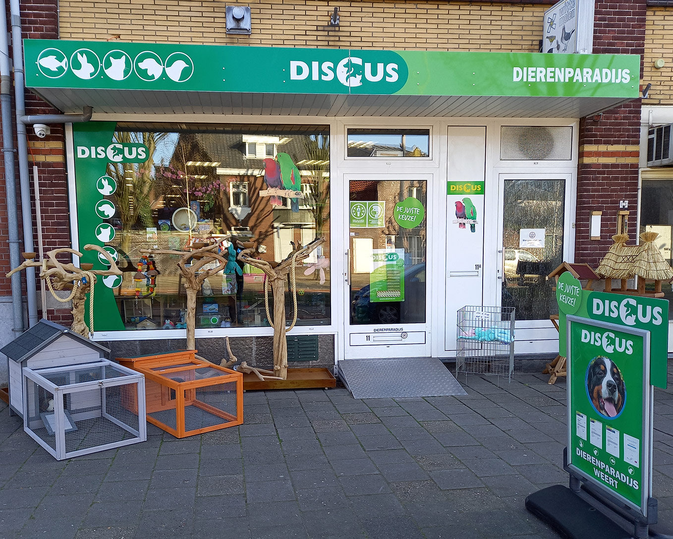 Discus Dierenparadijs Weert bestaat al meer dan 50 jaar en is bekend om zijn grote assortiment dieren en gespecialiseerd in tamme papegaaien. Wij hebben ook een groot assortiment vissen , knaagdieren en alle bijbehorende benodigdheden.
